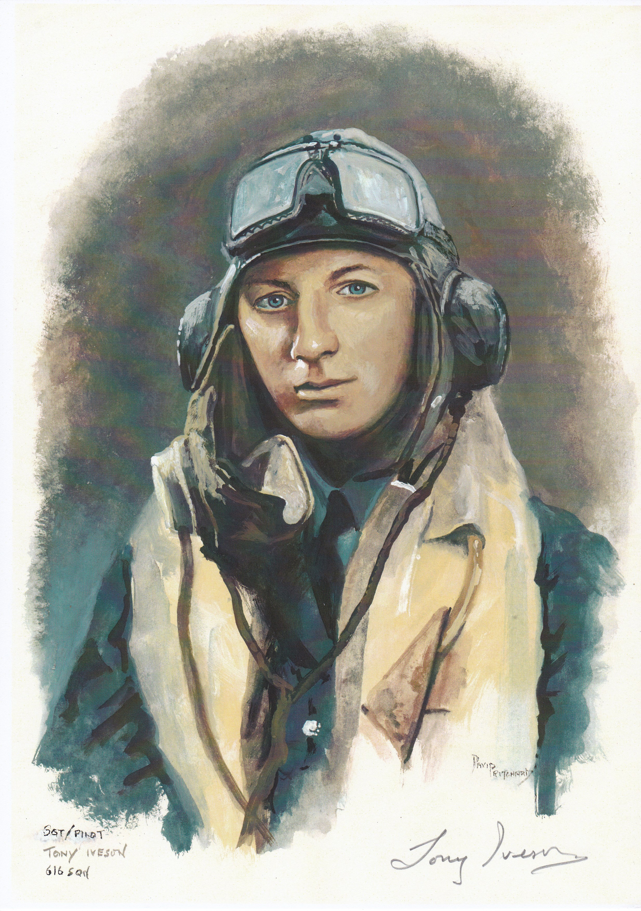 A new series of Royal Air Force Battle of Britain Pilot Portraits by David Pritchard...This portrait is of Royal Air Force Battle of Britain Fighter pilot Tony Iveson 616 Squadron in flying gear...Signed in pencil by Tony Iveson...priced @ £40.00...To complement the purchase of your fine art print, we are now able to offer a professional Picture Framing service. For further details please contact us by phone or email...There are a total of 75 portraits in the series , 41 in flying gear and 34 in Dress uniform...Buy any 2 and get a 10% discount...Buy any 5 and get a 15% discount...Buy any 10 and get a 25% discount...Buy the whole series of 75 and get a 50% discount.