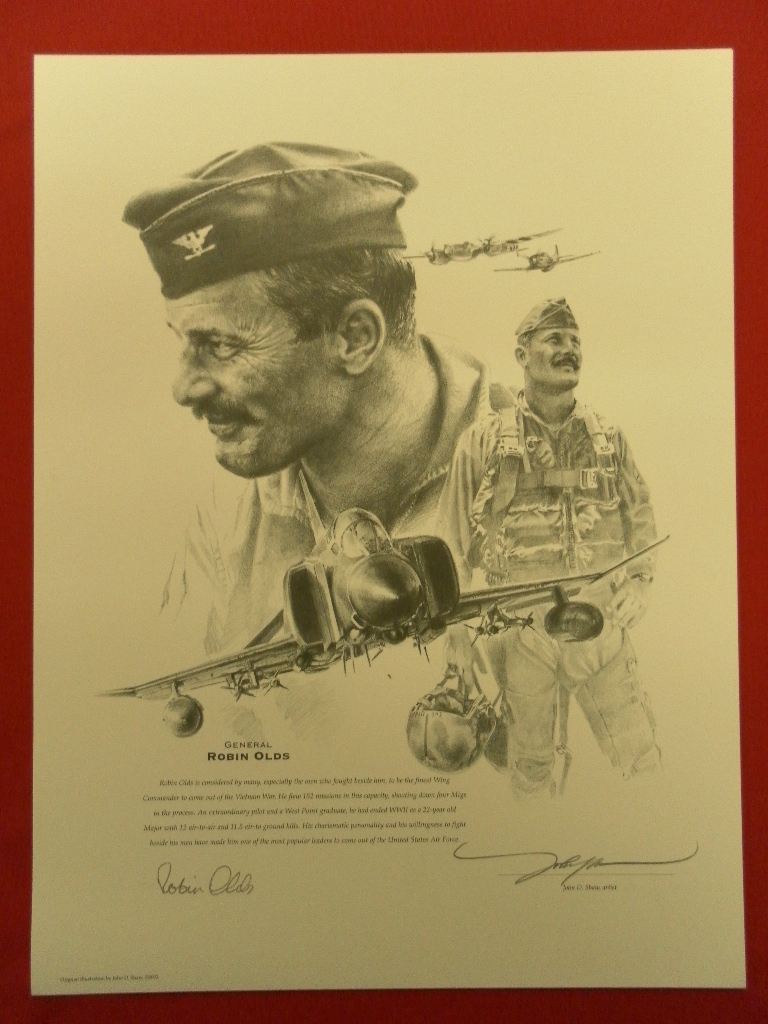 A Lovely montage portrait of the Legendary Robin Olds and some of the Aircraft he made famous...Signed by the artist : John Shaw and the Legendary Robin Olds ...priced @ £40.00 ...To complement the purchase of your fine art print, we are now able to offer a professional Picture Framing service. For further details please contact us by phone or email.