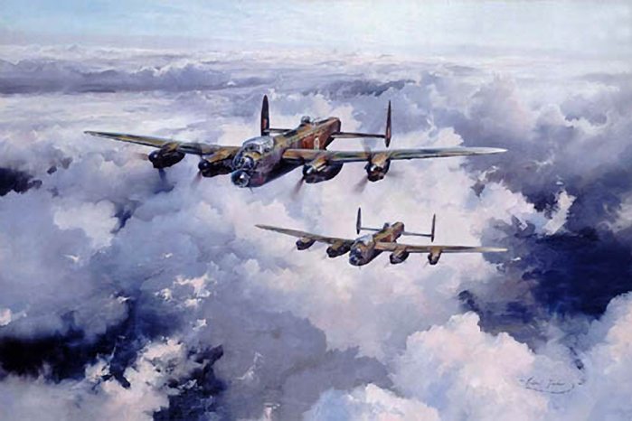 A superb study of a pair of Lancaster heavy bombers as they set out on a mission over occupied Europe, painted against a powerful cloudscape. Both Bill Reid and Norman Jackson, who have signed the print were both awarded Britain's supreme award, the Victoria Cross, flying in Lancasters...Individually hand signed by the artist : Robert Taylor , Bill Reid VC and Norman Jackson VC...priced @ £195.00 for this rare print...To complement the purchase of your fine art print, we are now able to offer a professional Picture Framing service. For further details please contact us by phone or email.